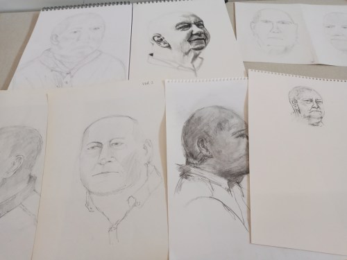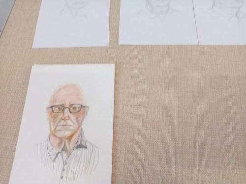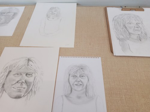 On 23rd May 2025, we held our first live in-house portrait drawing/painting session with 5 volunteers to sit as models. Working in groups of 4 artists, it proved an enjoyable and valuable afternoon. Creating such work in the space of 2 hours is not easy, especially for those attempting the subject perhaps for the first time.
